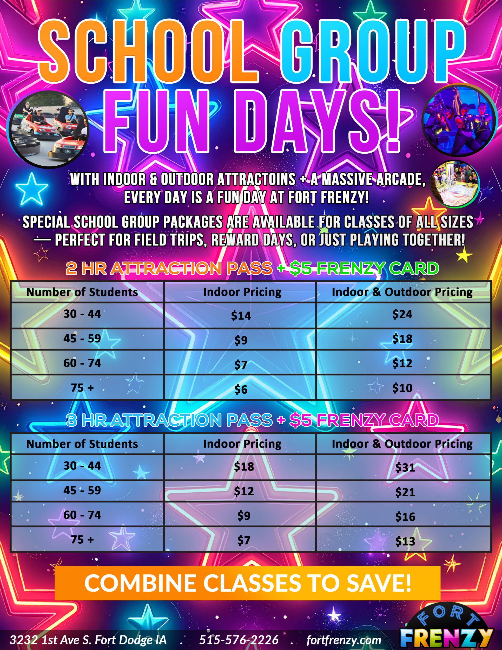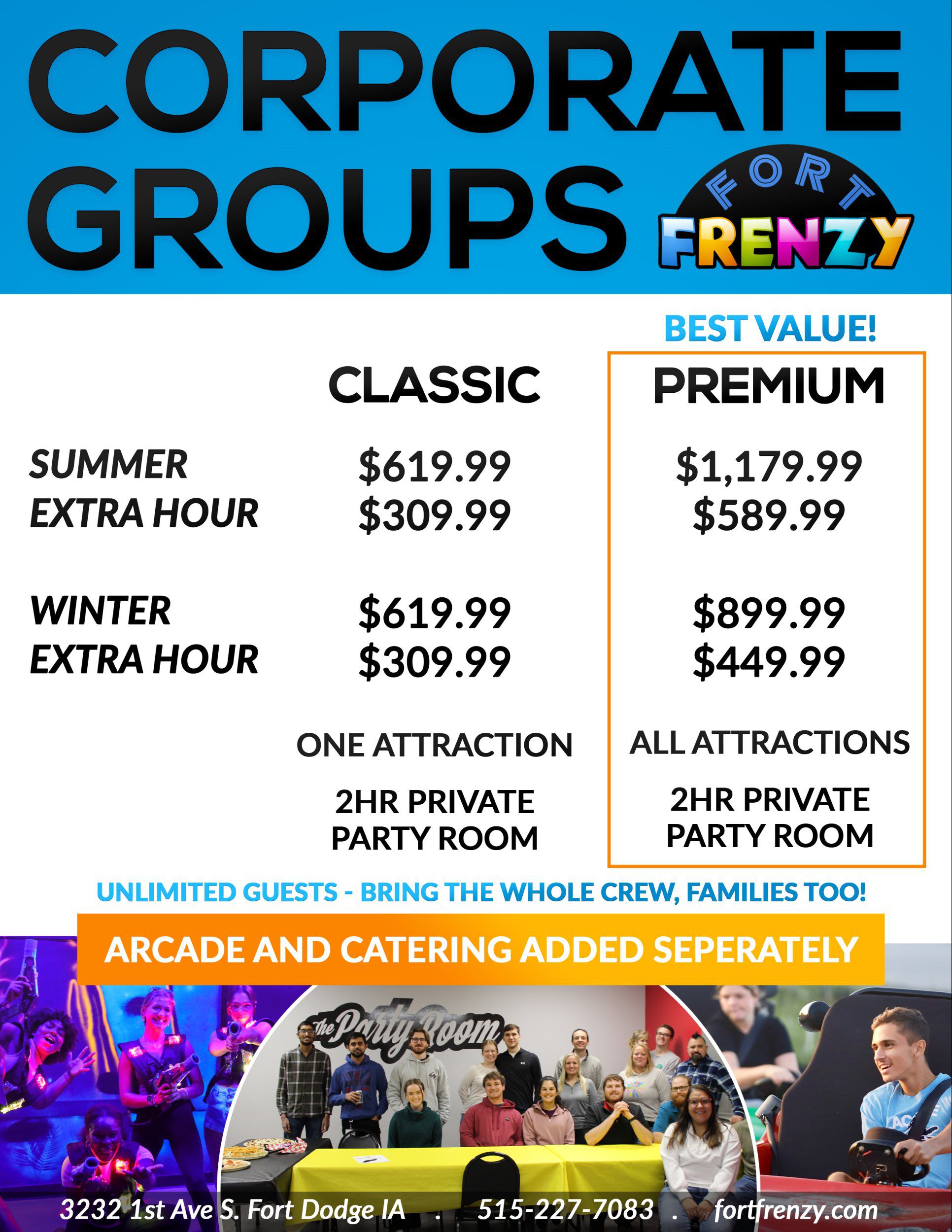 It’s time to let you in on a little secret…we LOVE hosting groups of all sizes from all sorts of different places! If you are planning a field trip or youth group gathering, looking for a place to host an after-prom, don’t want to dirty your house for the next family reunion, or looking for a fun team building option for the office, Fort Frenzy is the place! Reach out today–we are happy to accommodate! Plenty of room with loads of FUN!